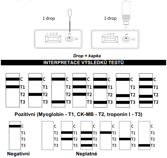 | Detekce: | Lidského myoglobinu, CK-MB a srdečního troponinu |