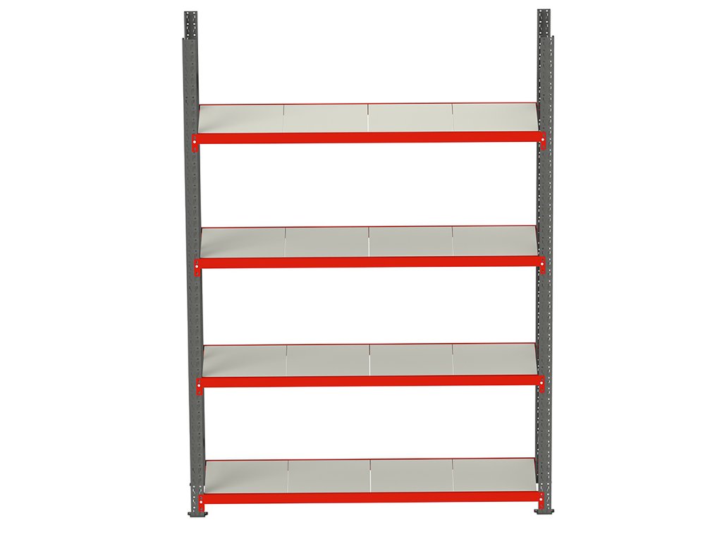 Kombináciou základného modulu s dostupnými prídavnýmimoduly je možné zostaviť ľubovoľnú dĺžku regálové jednotky . je zostavený z jedného rámu a štyroch políc. Modulárna konštrukcia umožňuje efektívne využitie priestoru.