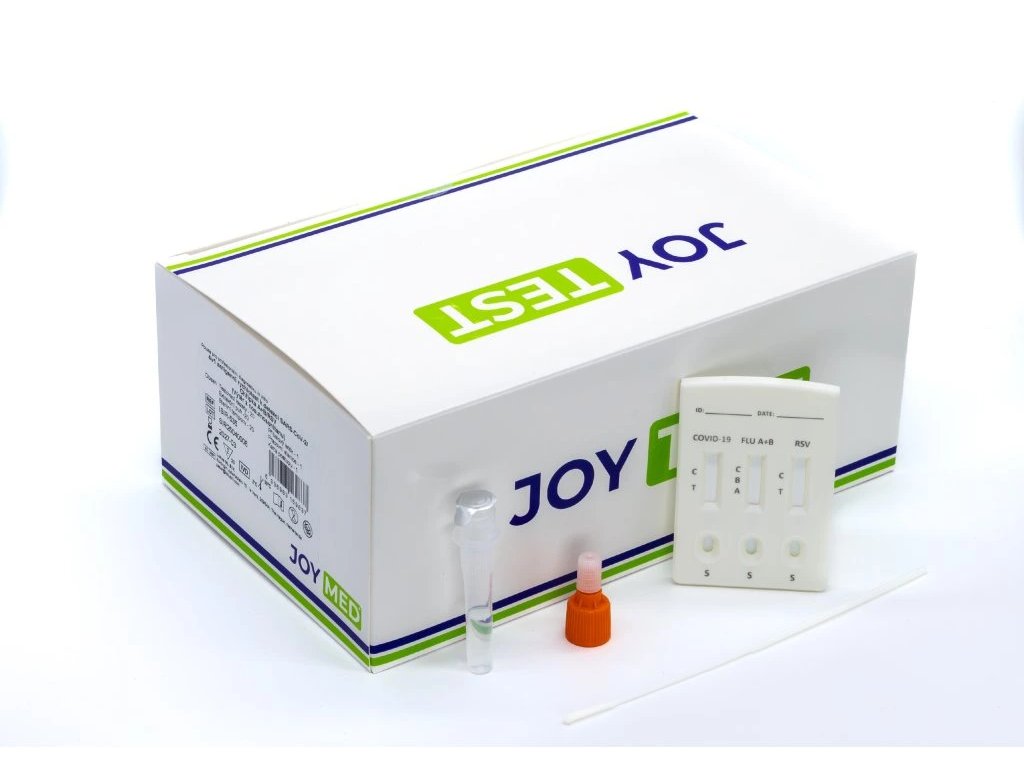 Profesionální JOYTEST 4v1 multitest detekuje SARS-CoV-2, chřipku A, B a RSV do 10 minut. Rychlé, přesné a certifikované řešení pro zdravotníky.
