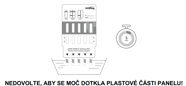 Použití je jednoduché: Odeberte čerstvý vzorek moči, ponořte testovací panel do vzorku na 10–15 sekund. Výsledek odečtěte do 5 minut.