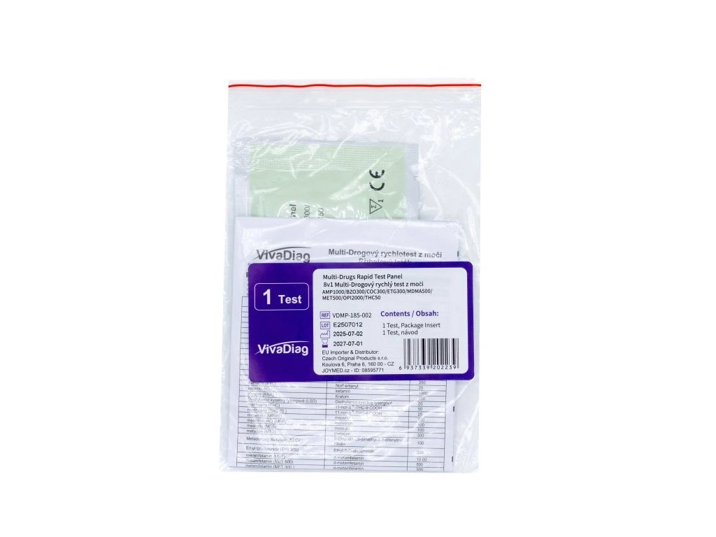 8v1 Drogový test VivaDiag je určen pro profesionální použití, kde je potřeba rychlá orientační kontrola užívání návykových látek: