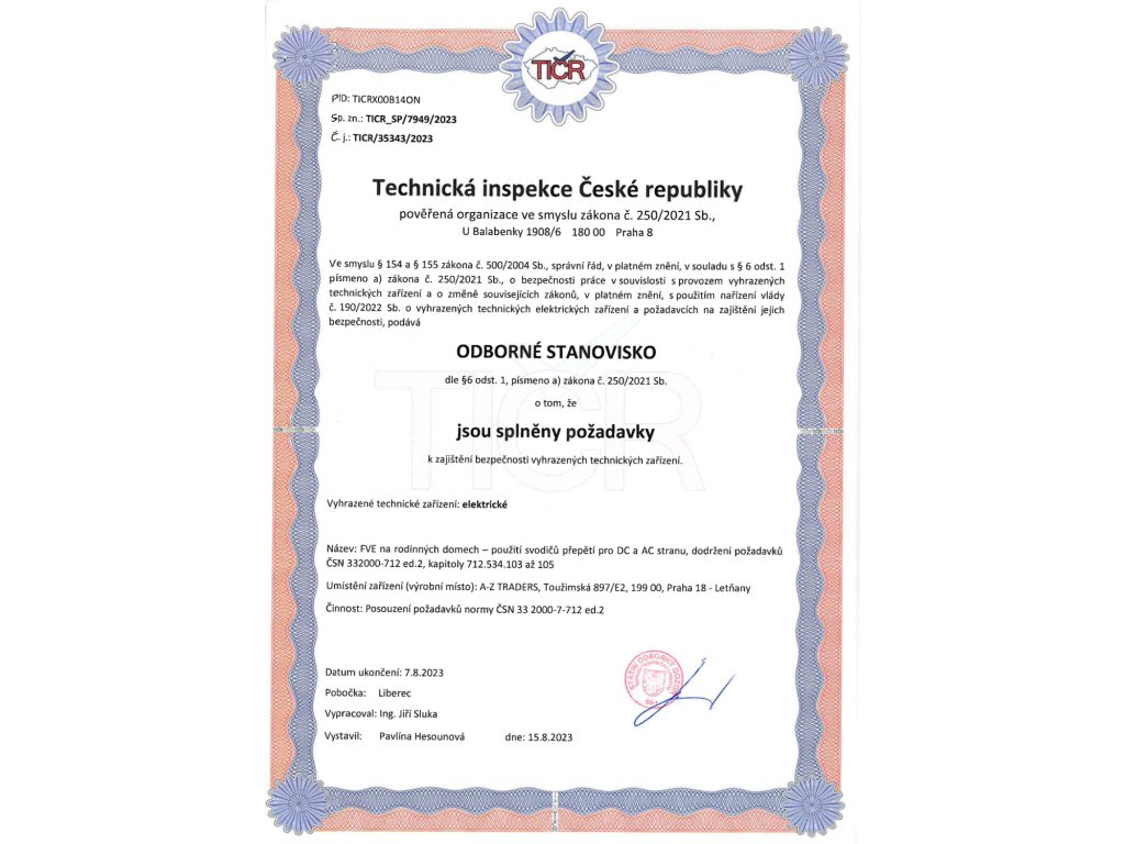 Vlastná SPD jednotka je triedy T1 + T2, pričom vďaka nadštandardnej zvodovej odolnosti (12/25 kA) je možná aplikácia aj na strechy s menej ako 4 zvodmi (podľa STN EN 51643-32).