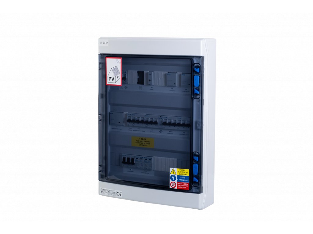 Ďalšou výhodou je minimálny zásah do rozvádzača zákazníka - Smartmeter (meranie striedača), spoločné rozvodné miesto a všetky ističe sú súčasťou tohto rozvádzača. Stačí teda urobiť spojenie medzi hlavným rozvádzačom a umiestnením technológie. V rozvádzači je pripravené aj krízové odpojenie striedača HDO (N0%). Rozvádzač R-FVE-D1 je navrhnutý s hlavným ističom v stĺpci do ističa B40/3.