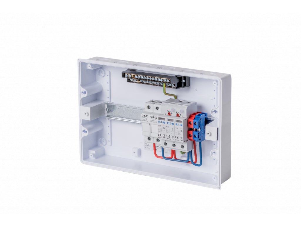 Certifikovaný kompletný rozvádzač chráni DC vedenie s maximálnym napätím 1000 V. Je určený pre povrchovú montáž a obsahuje dvojpólový poistkový odpojovač a zvodič prepätia na ochranu jedného stringu fotovoltaického systému.