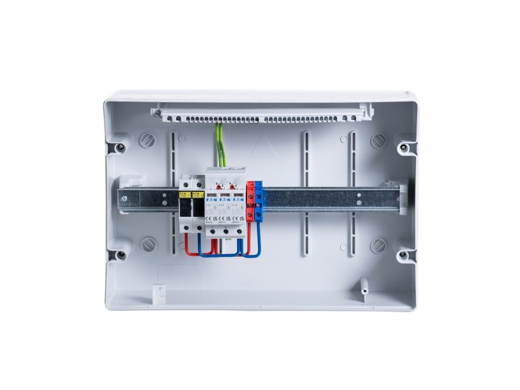 Odporúča sa kombinovať tento DC rozvádzač s rozvádzačmi pre striedavú časť inštalácie, ktoré sú osadené v rozvádzačoch od značky EATON IKA.