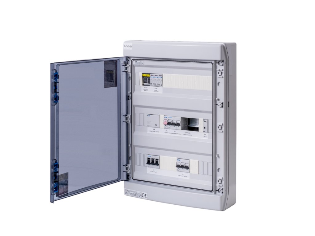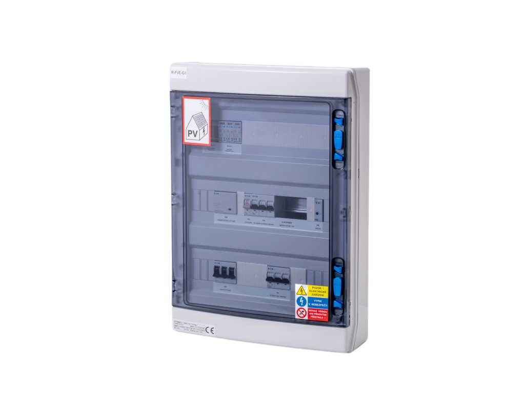 Rozvádzač je vybavený aj krízovým odpojením meniča HDO (N0%). Rozvádzač R-FVE-G1 je navrhnutý pre hlavný istič s maximálnym prúdom 40A. Obsahuje tiež DC poistkové spínače a zvodiče prepätia. Tento rozvádzač však nezahŕňa AC zvodič prepätia.