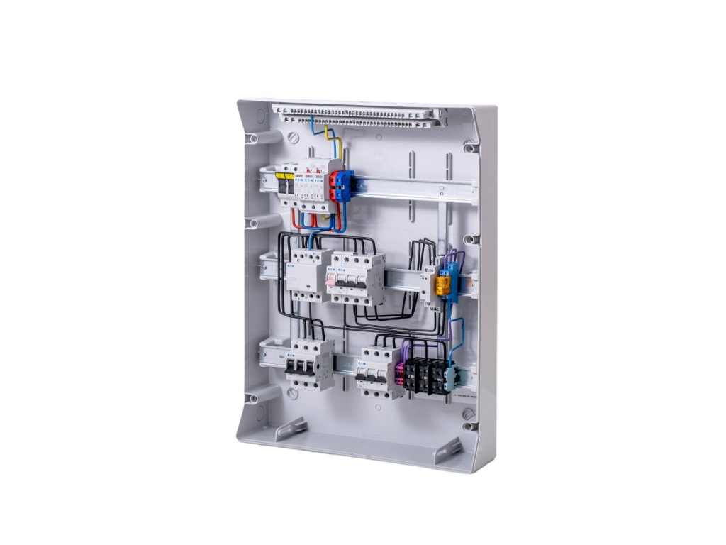 AC+DC rozvádzač určený na montáž na stenu so stupňom krytia IP65 je navrhnutý pre prevádzku trojfázových fotovoltických elektrární, typicky s využitím meničov GROWATT alebo iných meničov s priamym meraním. Jeho nepopierateľnou výhodou je minimálny zásah do rozvádzača zákazníka – meranie meniča prebieha priamo tu, spoločné rozvádzacie miesto a všetko istenie sú integrované v tomto rozvádzači. Stačí teda vytvoriť spojenie medzi hlavným rozvádzačom a umiestnením technológie.