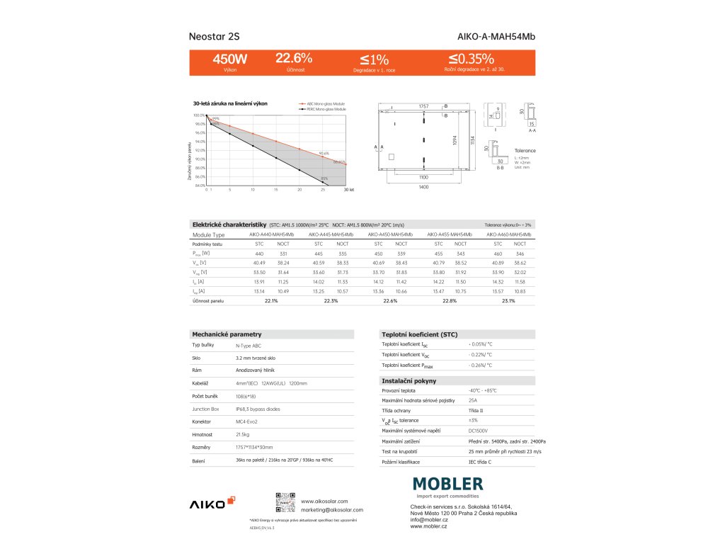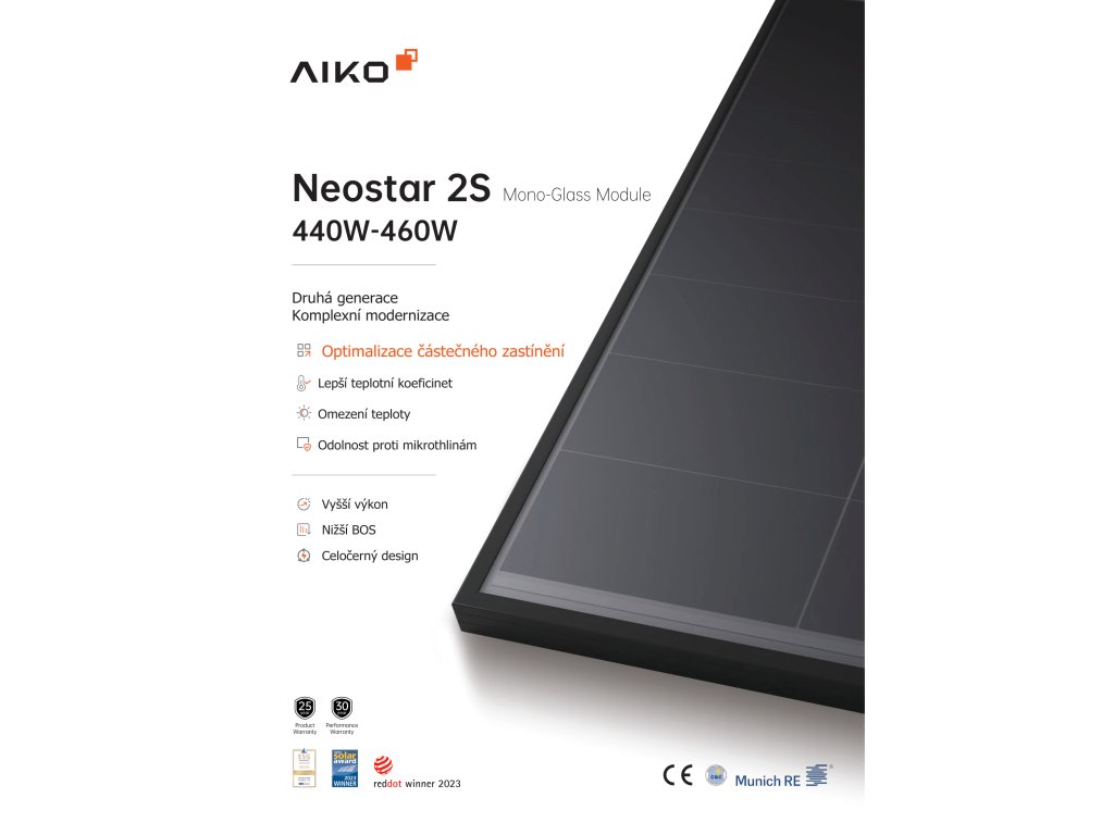 AIKO-A460-MAH54Mb - 2.generácia - Séria Neostar 2S Mono-Glass Module - celočierny rám - výkon 460 Wp