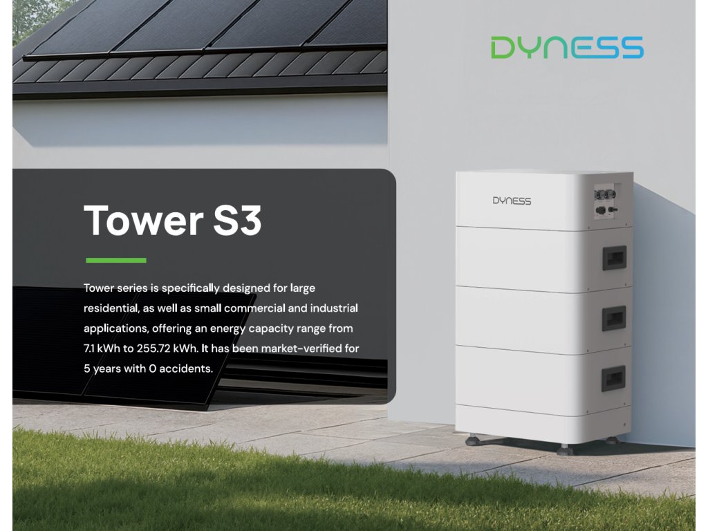 Dyness Tower S3 predstavuje najnovšiu generáciu vysokonapäťových batériových systémov s modulárnou konštrukciou, dlhou životnosťou a širokou kompatibilitou so špičkovými hybridnými striedačmi. Rad TS10–TS21 ponúka flexibilnú kapacitu, vysoký výkon a maximálnu bezpečnosť vďaka technológii LiFePO₄, ktorá je dnes považovaná za najspoľahlivejšie riešenie pre domácu i komerčnú akumuláciu energie.