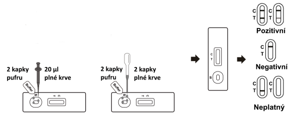 Použití je jednoduché: Odebřete kapku krve do testovací kazety, přidejte pufr, odečtěte výsledek po 10 minutách.
