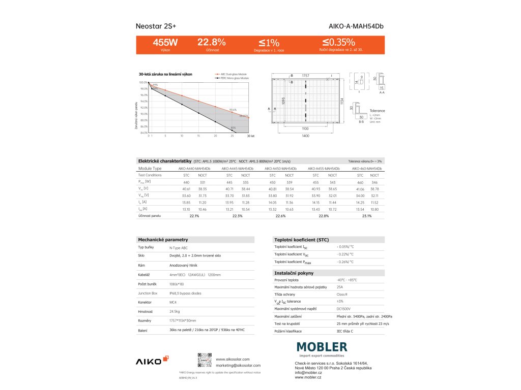 | Jmenovitý výkon Wp: | 455 |