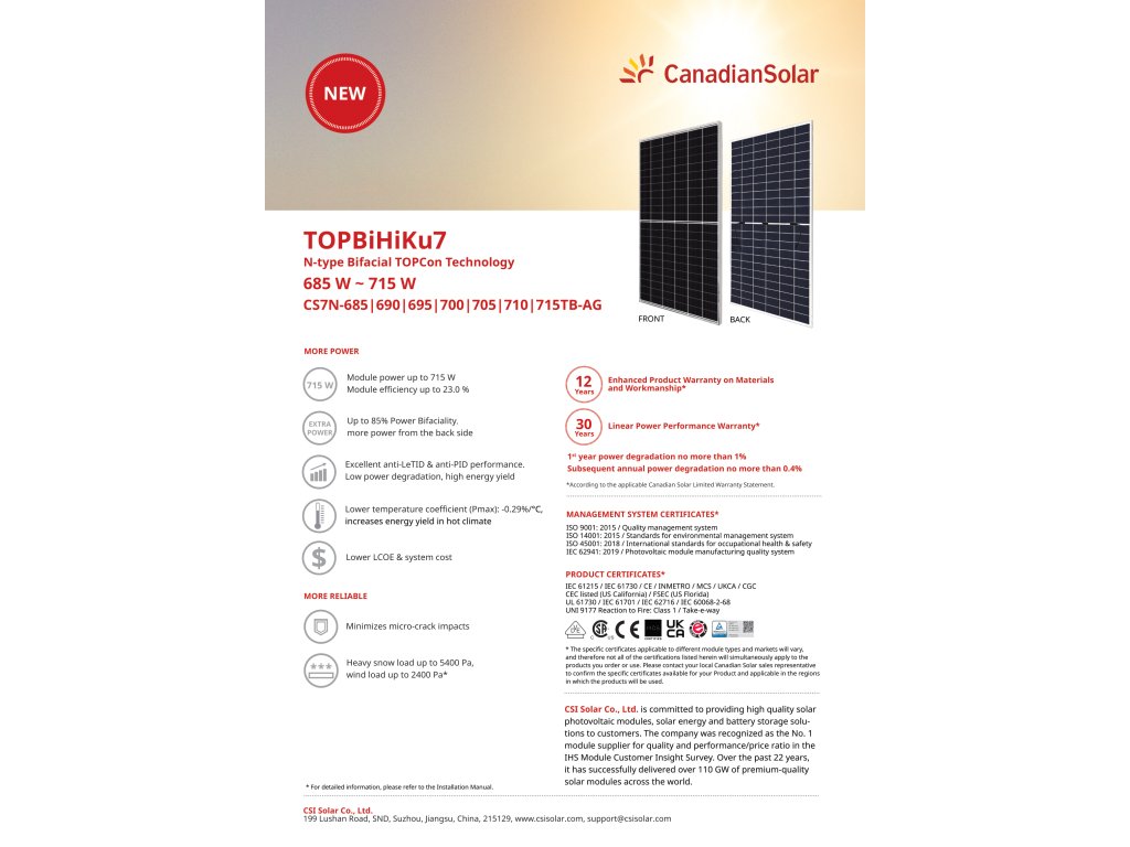 Canadian Solar 690W Silver Frame Bifacial 22,2% CS7N-690-TB-AG