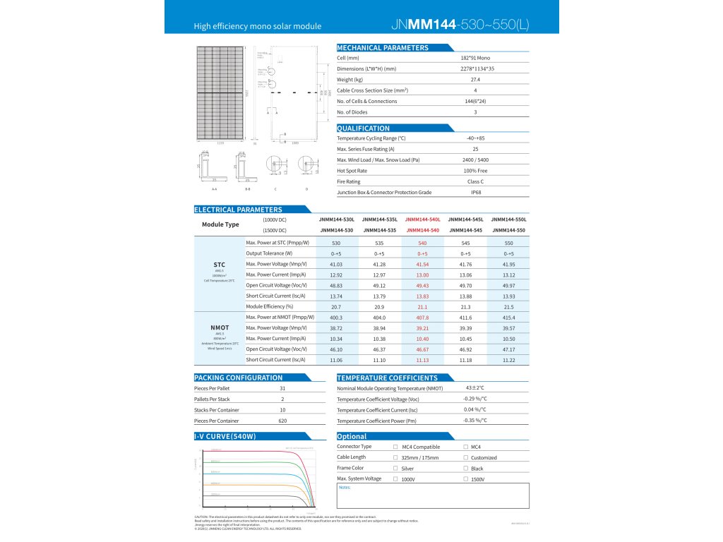 Jinergy 550Wp Silver Frame 21,5% JNMM144-550L