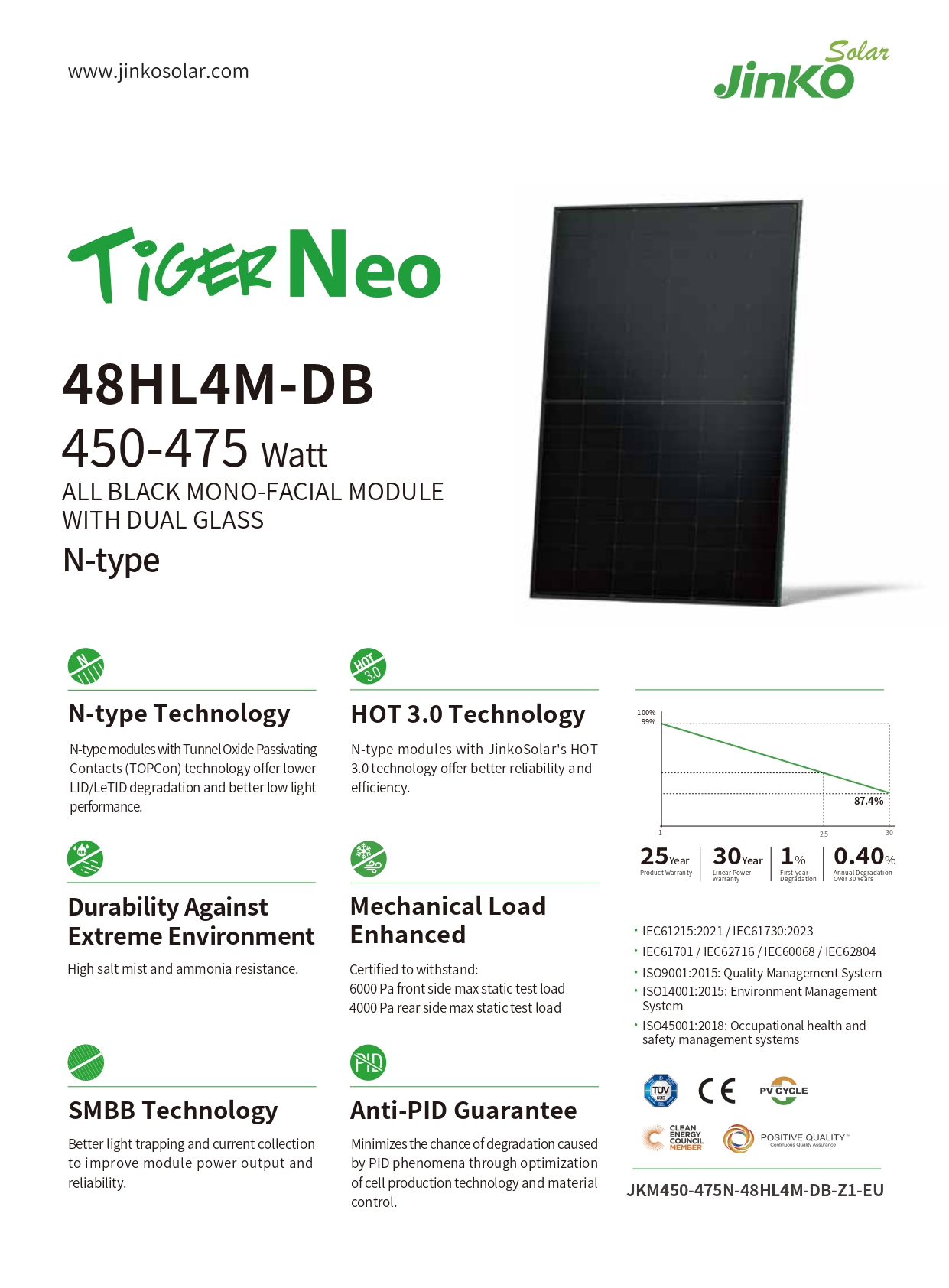 JINKO Tiger Neo N-type 460W Full Black 23,02% JKM460N-48HL4M-DB