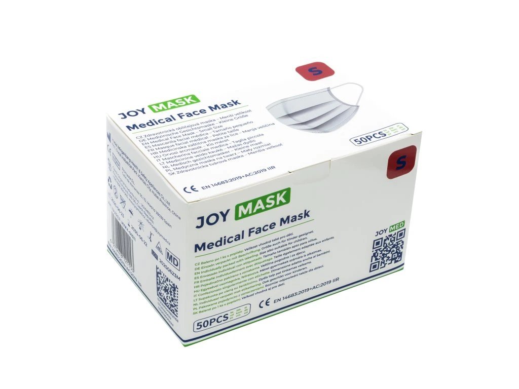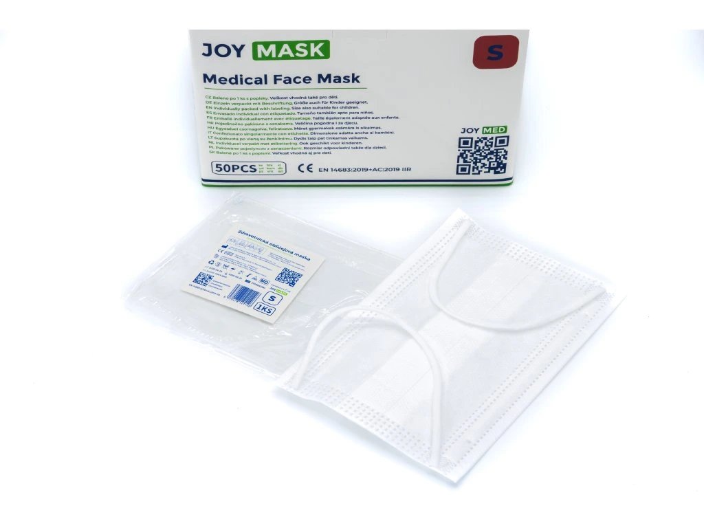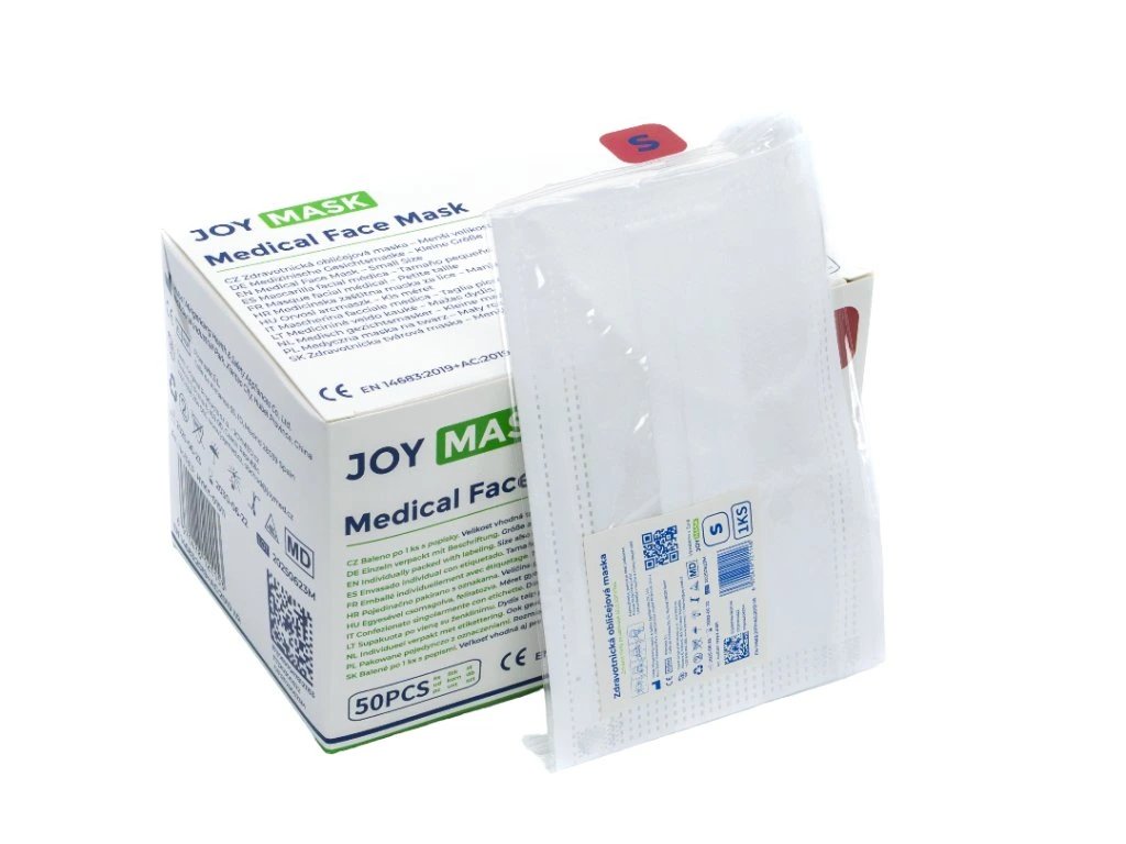 Vysoce kvalitní třívrstvá zdravotnická rouška JOYMASK v menší velikosti (145 mm), speciálně navržená pro děti, teenagery a osoby s drobnějším obličejem.