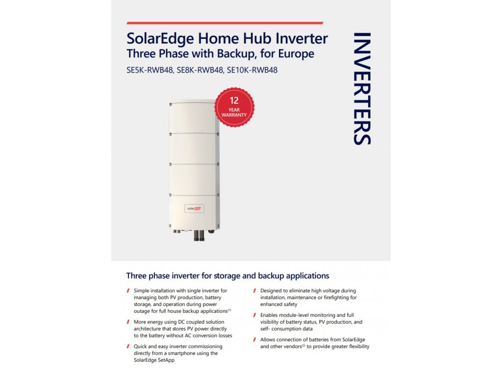 Vlastnosti produktu Trojfázový hybridný striedač SolarEdge Home Hub SE10K: