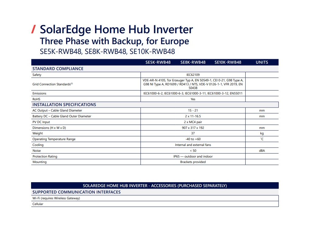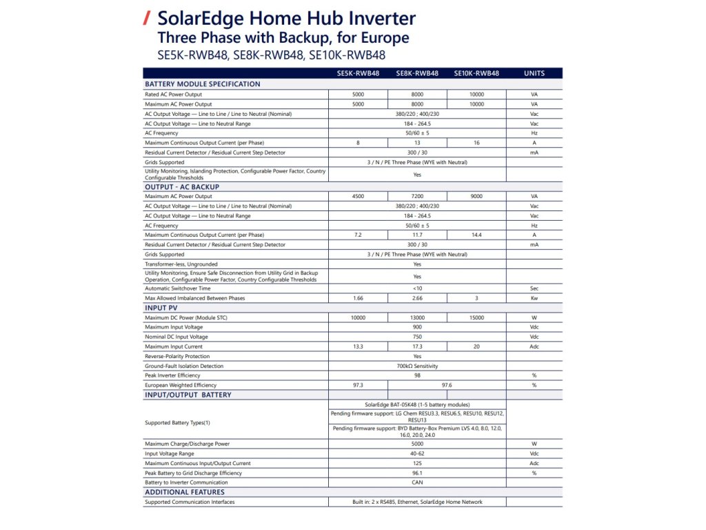 - Možnosť záložného napájania v kombinácii s rozhraním SolarEdge Home Backup Interface BI-EU3P