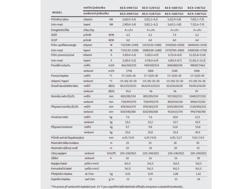 - 7,00 kW – KEX-24KTKI / KEX-24KTKO