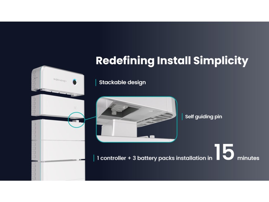 Inštalácia súčasných produktov na skladovanie energie je často zložitá, a preto spoločnosť Sigenergy revolučne zmenila proces a koncept produktu na jej jednoduchú inštaláciu. Zavedenie rýchlych konektorov eliminuje potrebu externej kabeláže, zatiaľ čo absencia zložitých skrutkovacích dekoratívnych prvkov výrazne skracuje dobu montáže. Kvalifikovaní technici teraz môžu nainštalovať 1 zostavu z riadiacej jednotky a 3 batérií počas iba 15 minút, čo vedie k 70% zvýšeniu efektivity a výraznej úspore nákladov na inštaláciu.