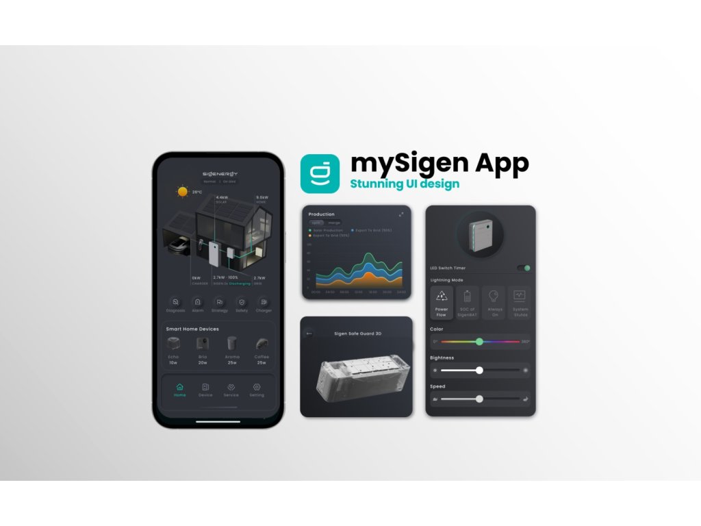 Aplikácia mySigen využíva sviežu koncepciu vzhľadu, ktorá sa vyznačuje užívateľsky prívetivým a intuitívnym rozhraním. Užívatelia môžu bez námahy sledovať a spravovať výrobu a spotrebu elektriny v reálnom čase, pričom dáta sa obnovujú každých 10 sekúnd. To zjednodušuje kontrolu stavu systému a uľahčuje rýchle nastavenie prevádzkových parametrov systému.