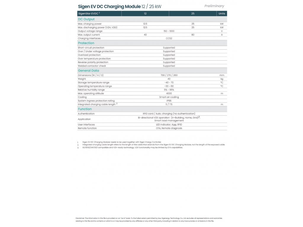 Technické špecifikácie nabíjacieho modulu EV DC do zostavy SigenStor