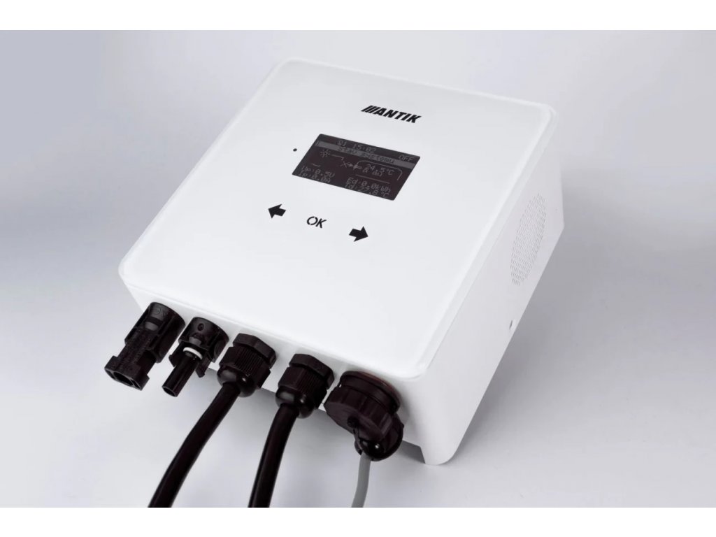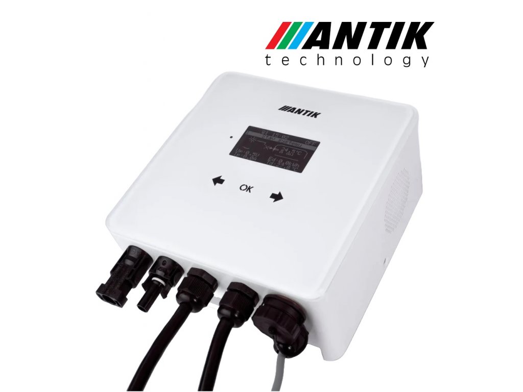 Solárny menič Antik Water Heater PWH 01 V3 MPPT slúži na napájanie vykurovacích zariadení. Má voliteľný výkon 2 000 - 3 000 W a umožňuje efektívne priame napájanie bojlera zo slnka. Táto nová verzia je vylepšeným variantom úspešného modelu V2 a navyše disponuje dvoma výstupmi. Menič je koncipovaný pre vstupné napätie 0 až 400 V DC, s ohľadom na prevádzkové napätie vykurovacej patróny bojlera. Vďaka tomu, že je bojler v podstate čisto ohmická záťaž, je výkon spracovávaný prakticky od prvého vyrobeného wattu.