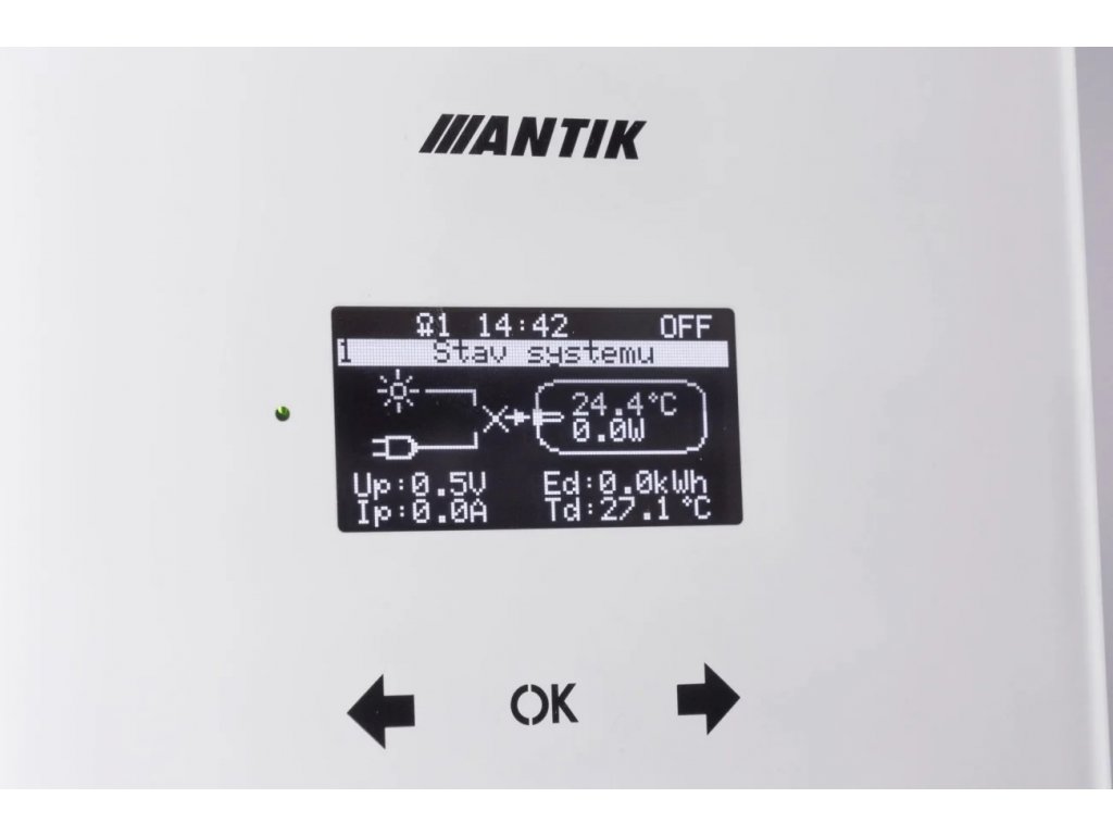 Tento solárny menič predstavuje optimálne ekonomické a technické riešenie pre napájanie bojlera priamo z fotovoltaiky, bez nutnosti veľkej, ťažkej a drahej technológie. Pre rôzne ovládanie a nastavenie meniča je k dispozícii bezplatná aplikácia ANTIK Smart Home (pre Android aj iOS). Navyše spĺňa podmienky dotačného programu NZÚ light 2024, a to bez nutnosti ďalších rozvádzačov so stýkačovou kombináciou alebo iných spôsobov dodatočného prepnutia medzi sieťou a fotovoltaickým zariadením. Zariadenie podľa nastaveného režimu priamo napája bojler z produkcie solárnych panelov, minimalizujúc tak zbytočné straty.