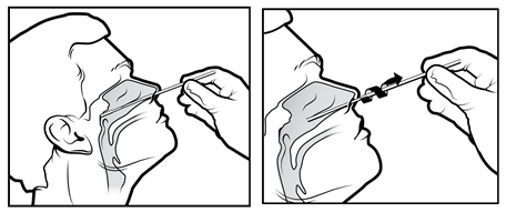 - Požádejte pacienta, aby odstranil sekrety z povrchu přední nosní dutiny, držte hlavu mírně zakloněnou a jemně a pomalu zaveďte tampon nosní dutinou do nosohltanu. Při setkání s odporem se dostane do zadního nosohltanu. , zůstaňte několik sekund, abyste absorbovali sekrety, a jemným otáčením tampon vyjměte.