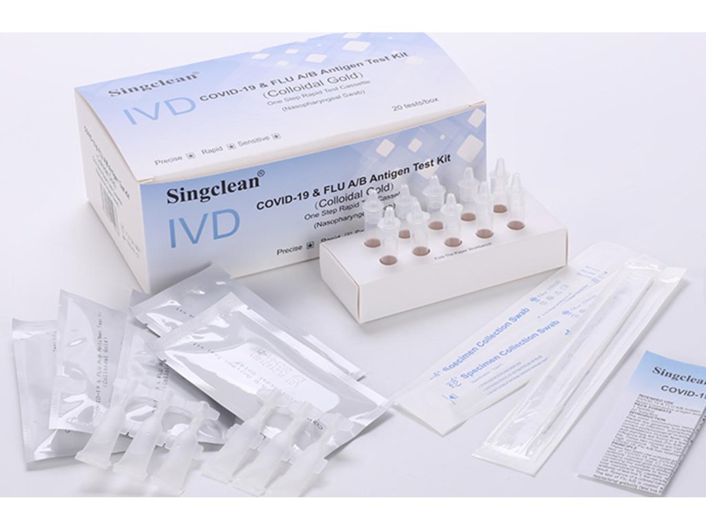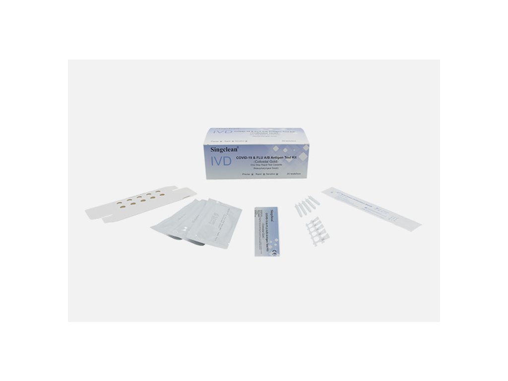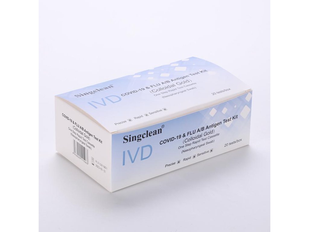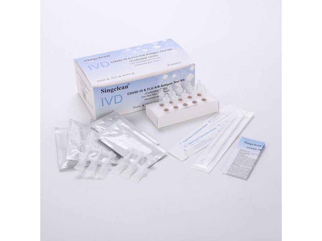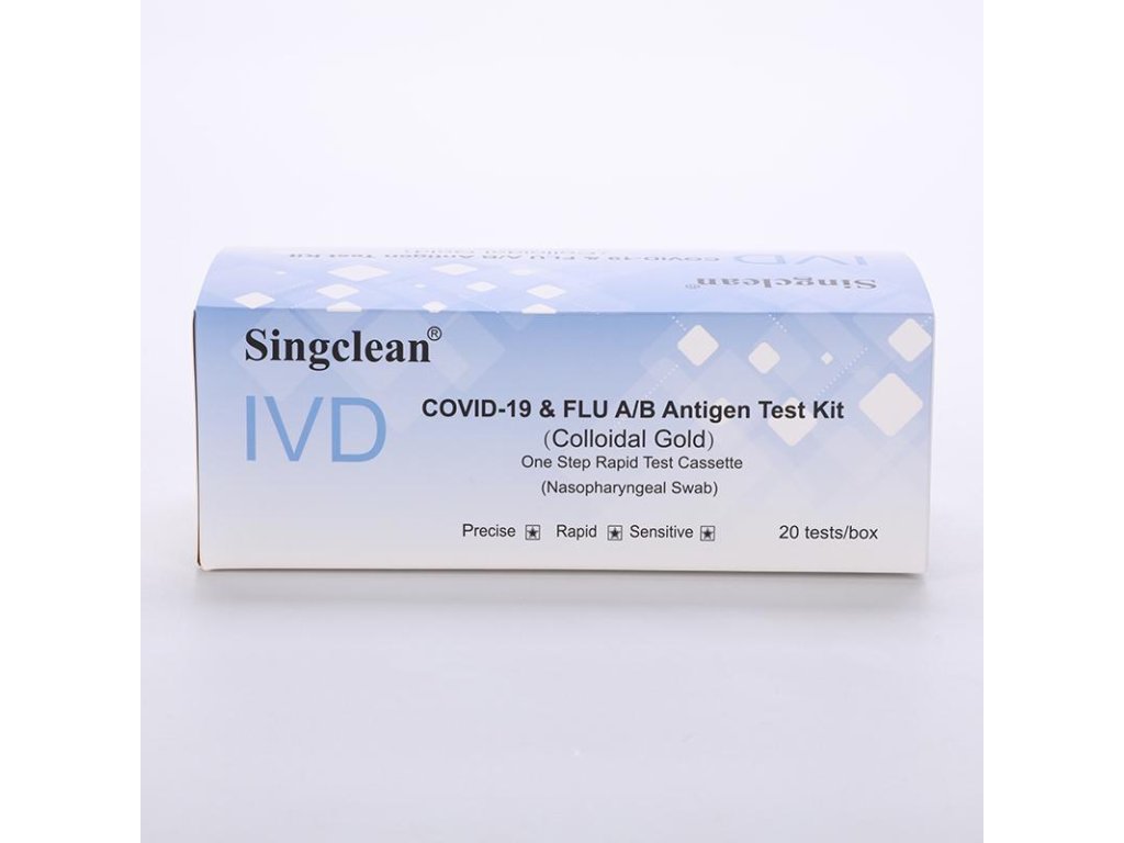 Rychlá testovací souprava Singclean IVD Covid-19 & Flu A/B Antigen slouží k detekci Koronaviru 2019 a virů chřipky A/B.
