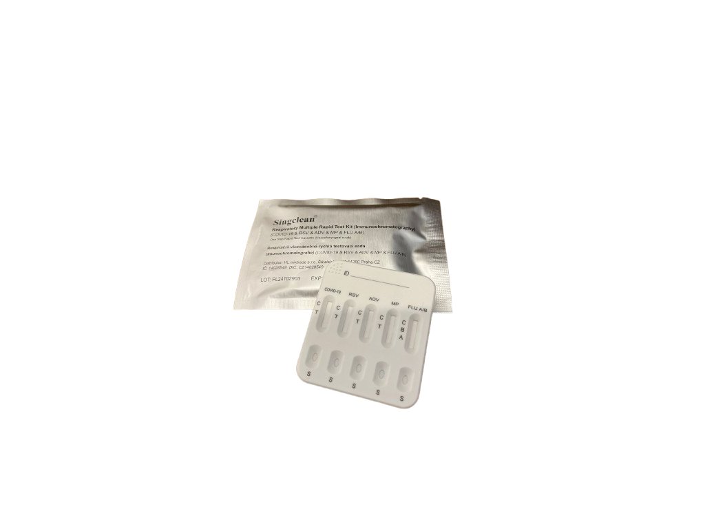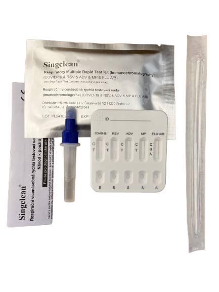 Respirační vícenásobná rychlá testovací sada, která využívá imunochromatografickou metodu, je určena pro kvalitativní in vitro detekci několika druhů antigenů. Tato testovací sada umožňuje odhalit antigen Sars CoV2 , antigen respiračního syncytiálního viru (RSV), antigen adenoviru, antigen Mycoplasma pneumoniae (MP) a antigen chřipky typu A a B. Všechny tyto antigeny lze detekovat v nosohltanových výtěrech odebraných od pacientů.